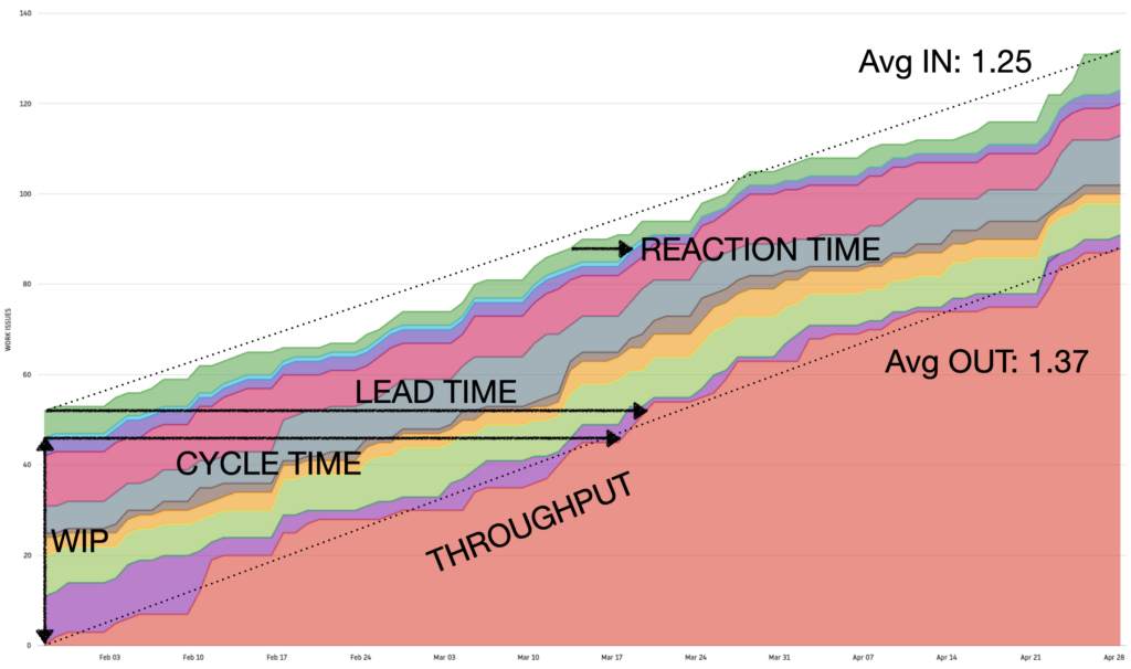 Au travers du CFD vous pouvez mesurer l’ensemble des Flow Metrics de votre flux :