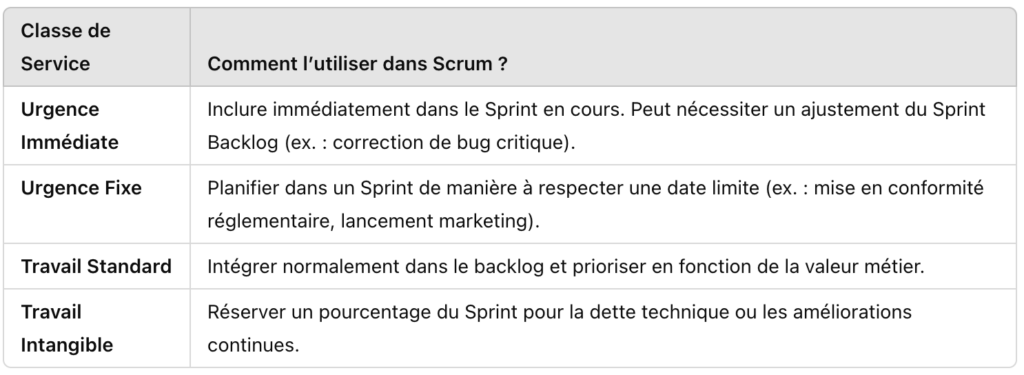 Peut-on utiliser les Classes de Service dans Scrum ?