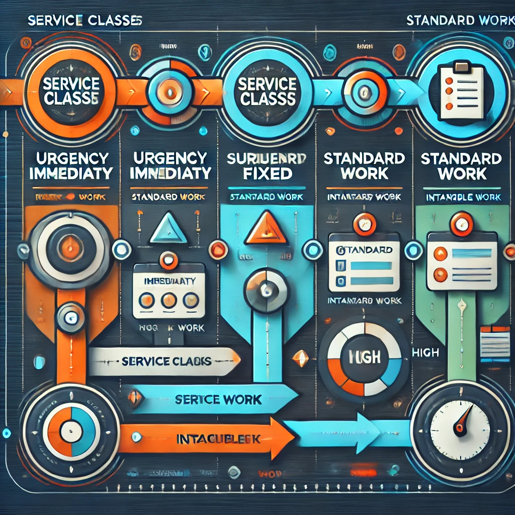 - Les Classes de Service définissent la manière dont un élément de travail doit être traité, en prenant en compte l’urgence, l’impact métier et le coût du retard.